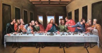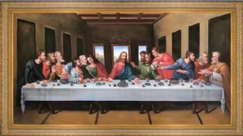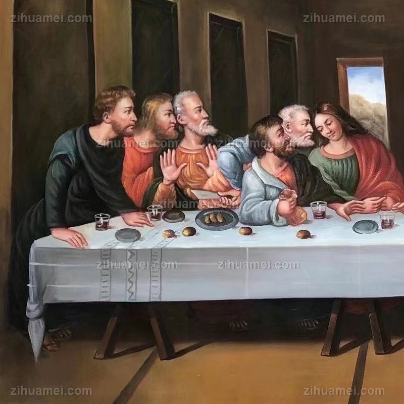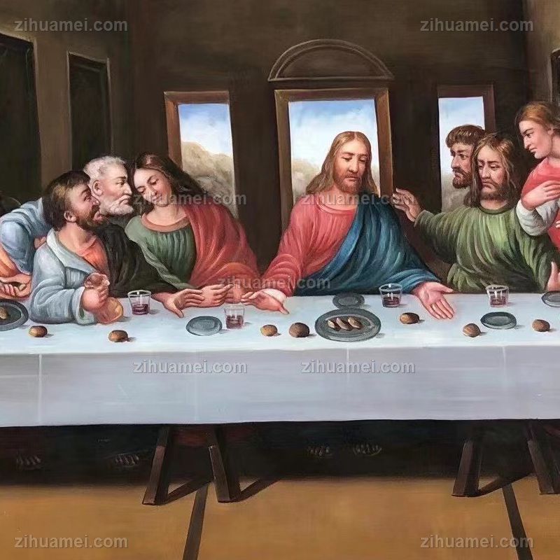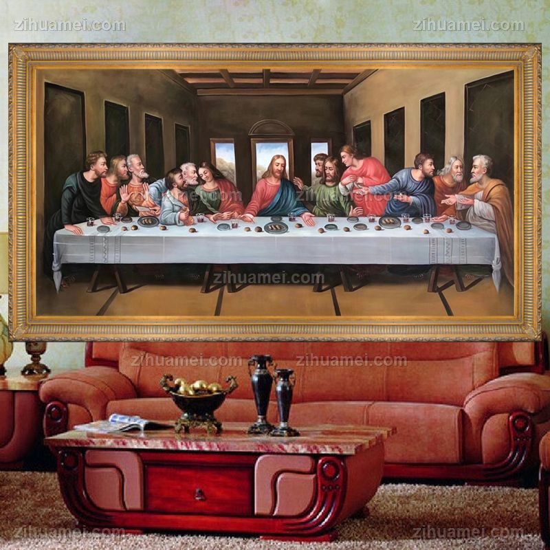 • 纯手绘欧式古典油画最后的晚餐意大利艺术家列奥纳多·达·芬奇作品古典实木画框