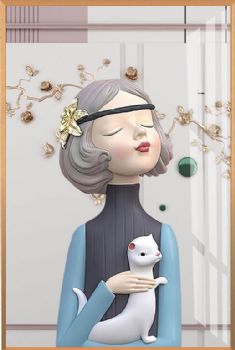 • 怀抱白色猫咪的女孩高清微喷晶瓷画艺术装饰画儿童房挂画