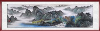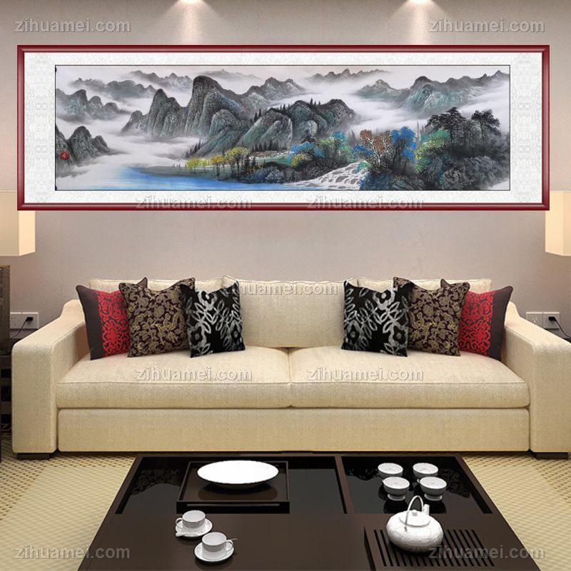 • 适合酒店大厅山水国画纯手绘山水国画六尺对开风水画写意风景画实木画框