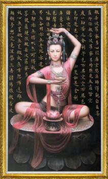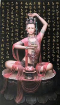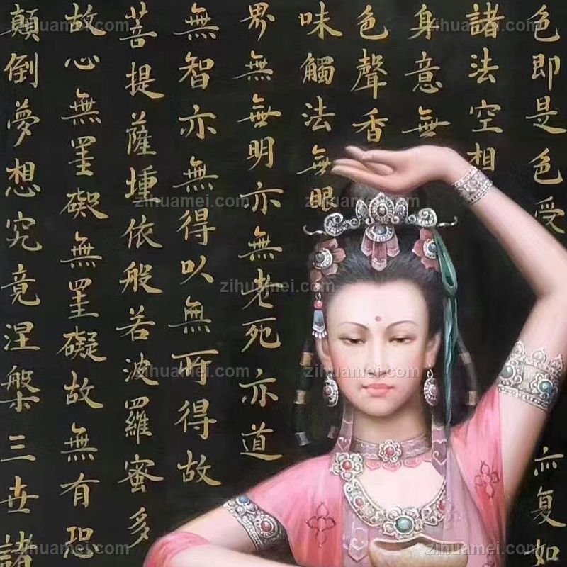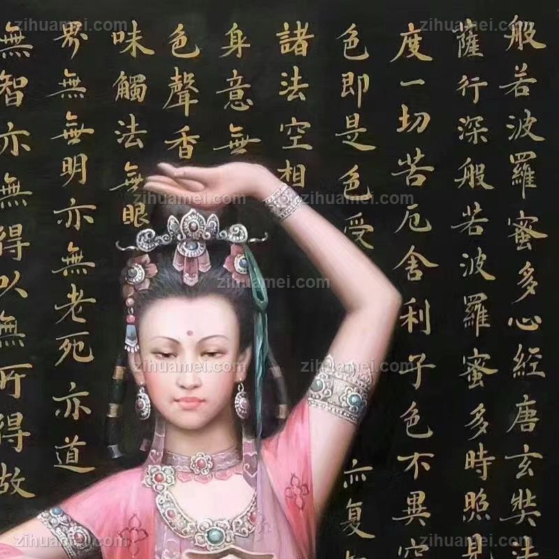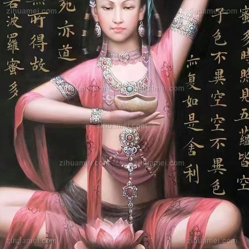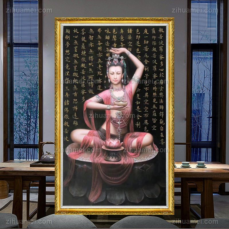 • 纯手绘人物油画般若波罗蜜多心经写意油画实木画框