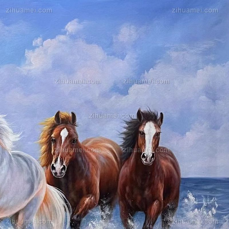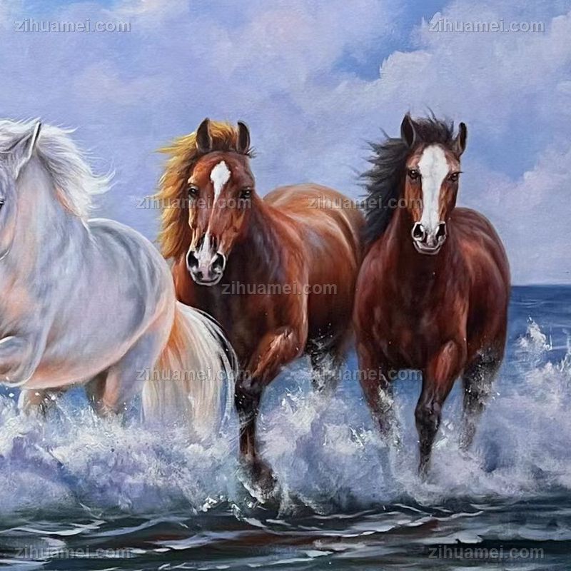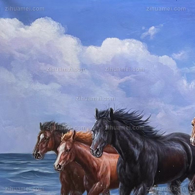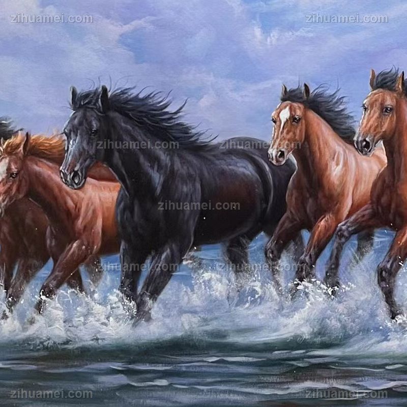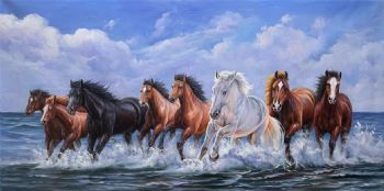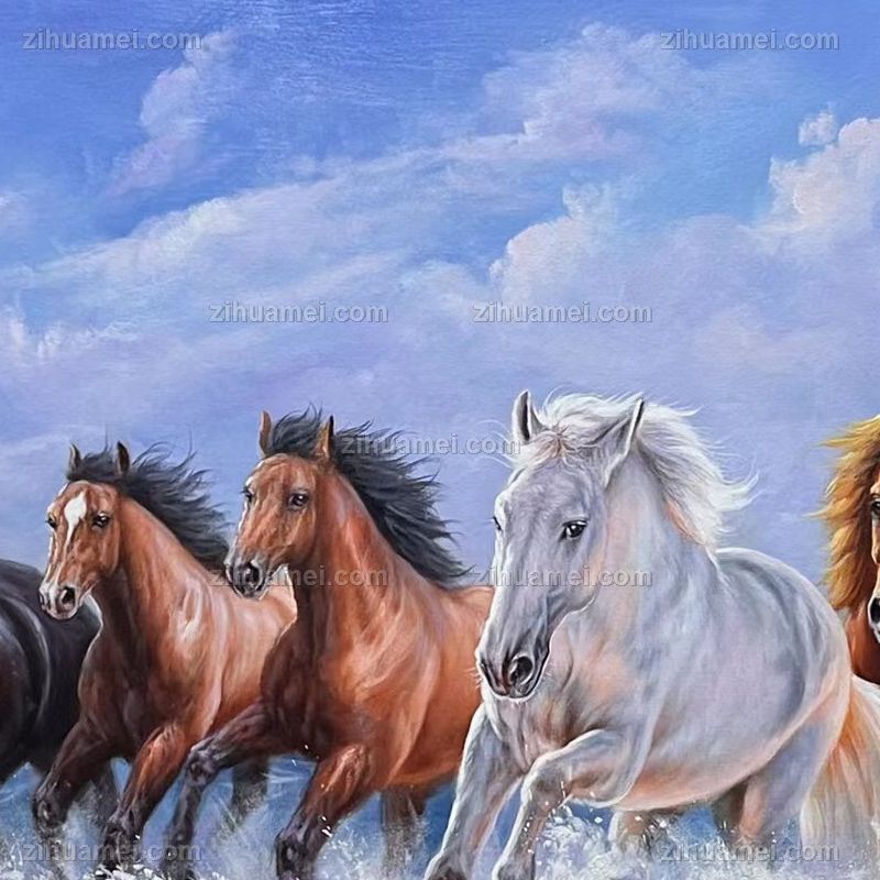 • 动物油画八骏图万马奔腾图纯手绘油画适合大厅会议室挂画
