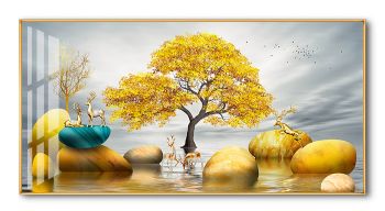 现代高清大型晶瓷画黄金树风水画新中式装饰样板房客厅装饰画 高清微喷