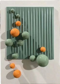 • 精品现代装置艺术不锈钢金属立体画纯手工打造橙色球与绿色球别墅酒店装置艺术画