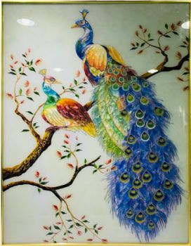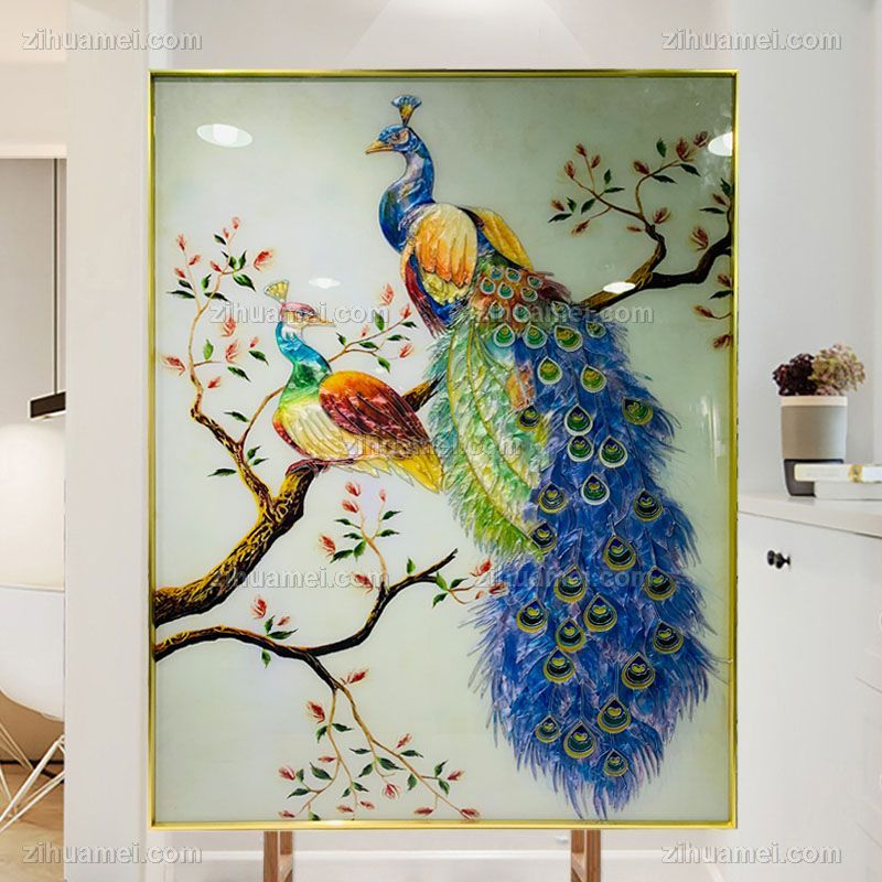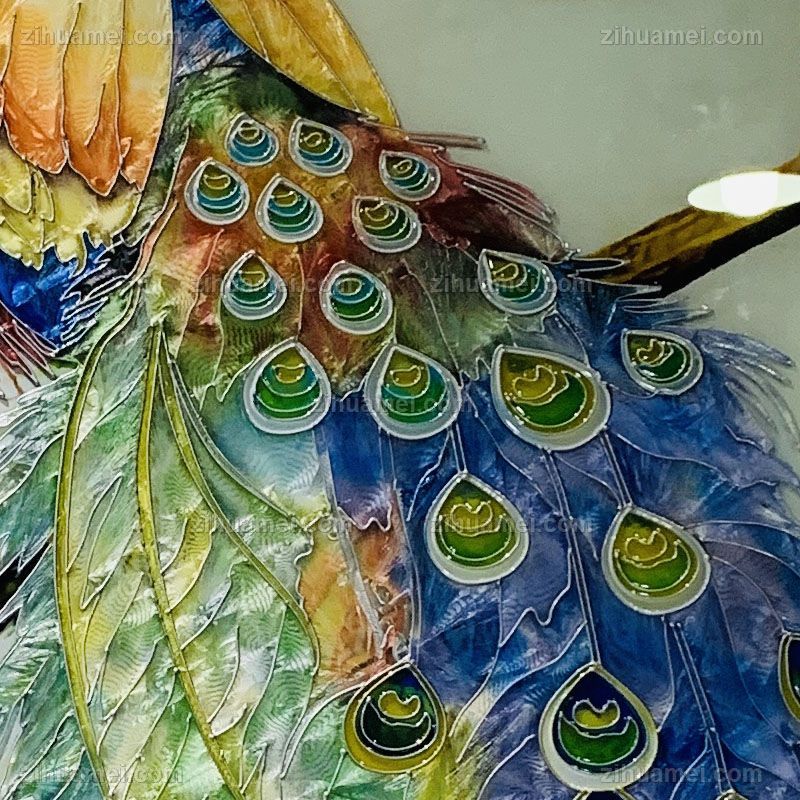 • 富贵吉祥奢华极致珐琅彩艺术画孔雀艺术装饰画纯手工打造