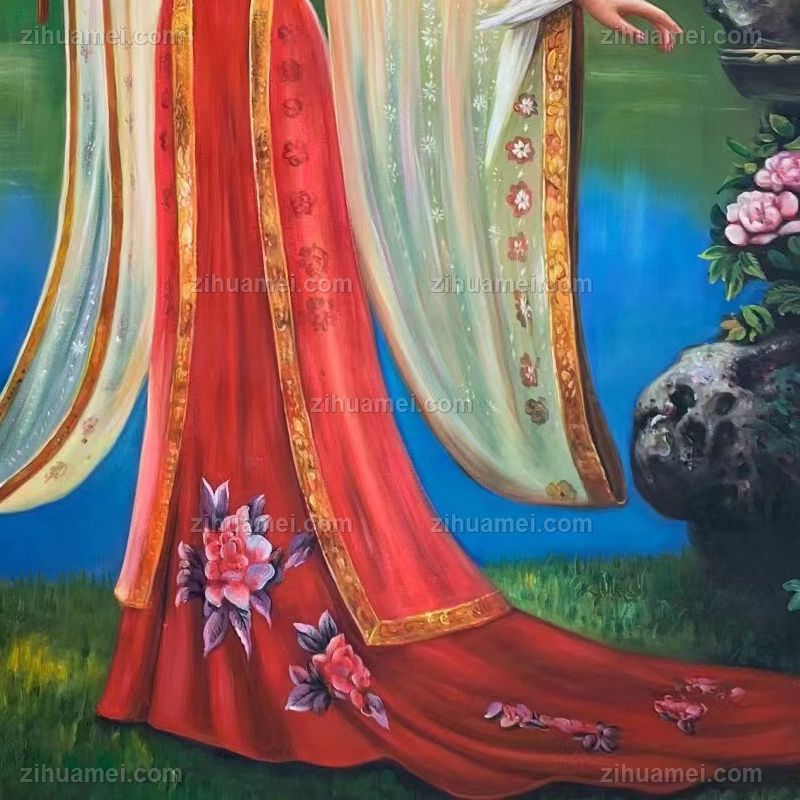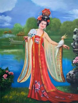 • 杨玉环贵妃醉酒中国古代四大美女纯手绘油画写实人物油画