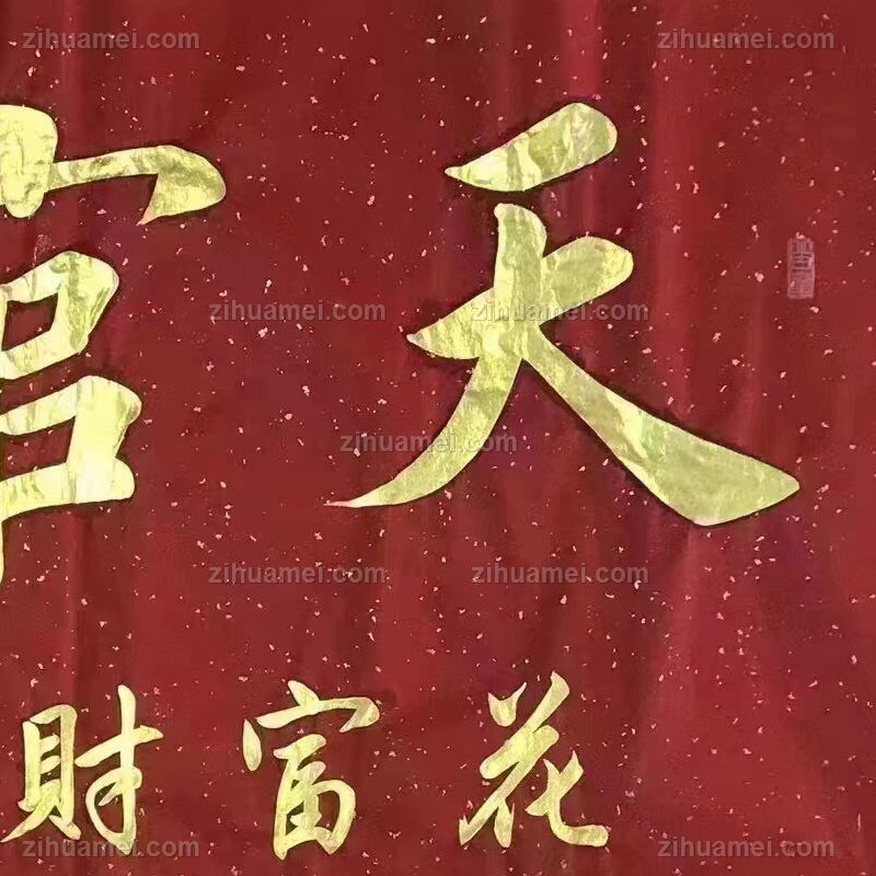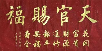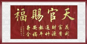 • 天官赐福当代艺术书法家董泽柱书法作品金色墨宝书法作品
