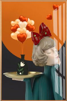 • 精品装饰画手举托盘的气球女孩高清微喷晶瓷画艺术装饰画儿童房挂画