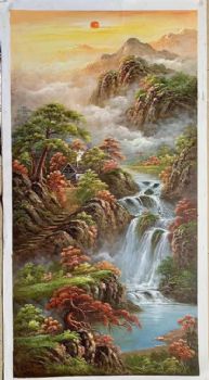 金山聚宝盆山水风景油画纯手绘大厅山水风景油画 手绘