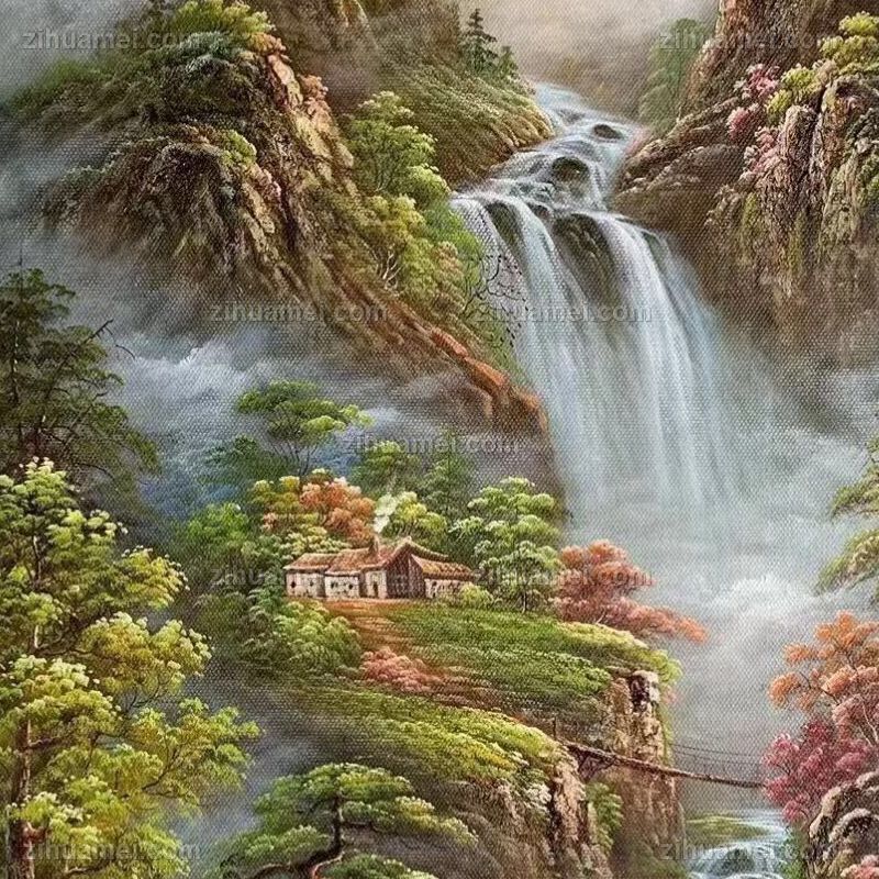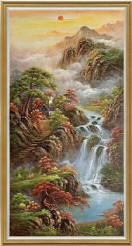 纯手绘风景油画山水画聚宝盆风景油画实木画框 手绘