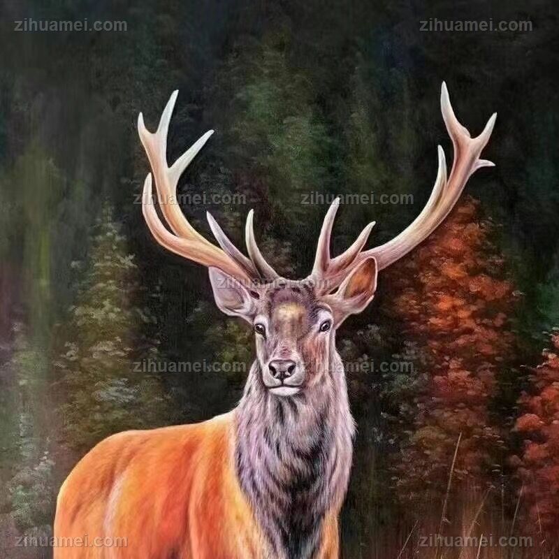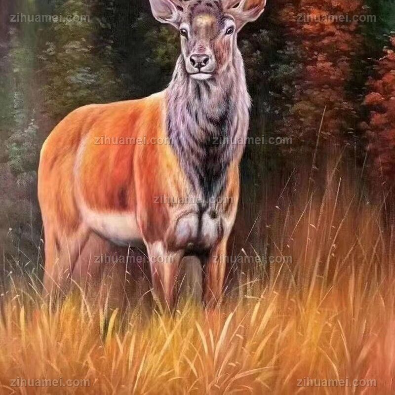 • 写实手绘油画麋鹿动物油画寓意一路向上精品手绘油画适合客厅办公室油画