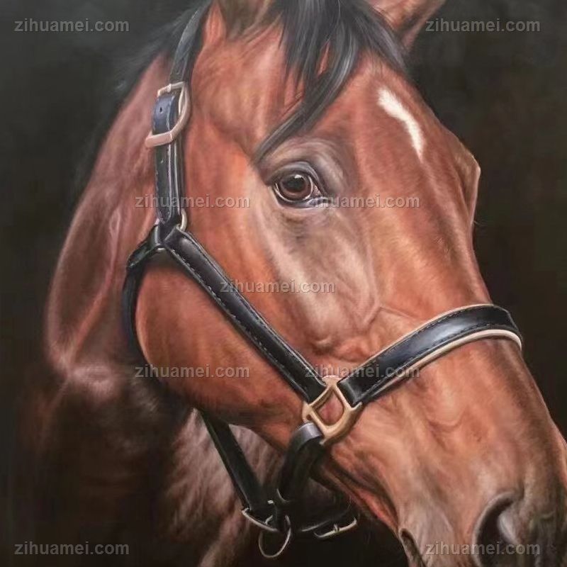 • 实力画家马头图动物油画精品写实手绘油画适合领导办公室油画
