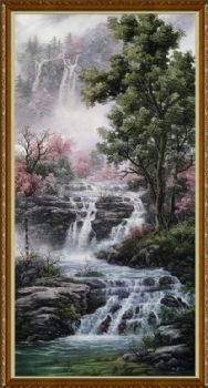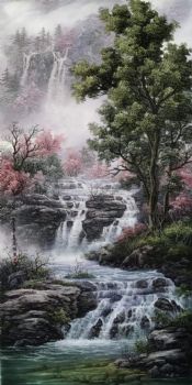 • 竖幅风景油画实力派画家纯手绘新中式山水画风景油画山川风景油画中式风水油画