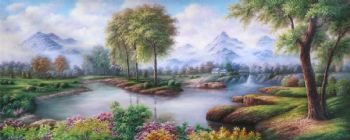金山聚宝盆山水风景油画纯手绘大厅山水风景油画 手绘