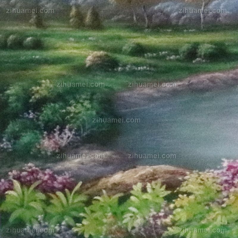 纯手绘风景油画山水画聚宝盆风景油画实木画框 手绘