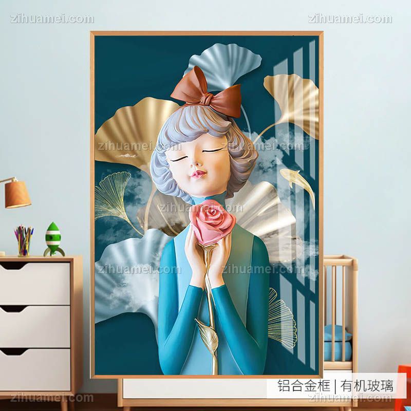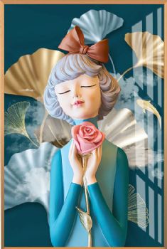 • 背有银杏叶手握玫瑰花的女孩装饰画晶瓷画适合儿童卧室的装饰画
