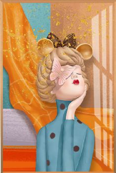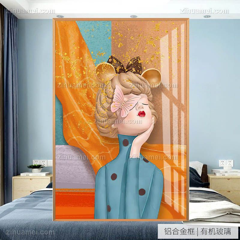 现代装饰画傲娇的女孩蝶蝴自来高清微喷晶瓷画艺术装饰画儿童房挂画 高清微喷