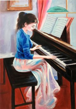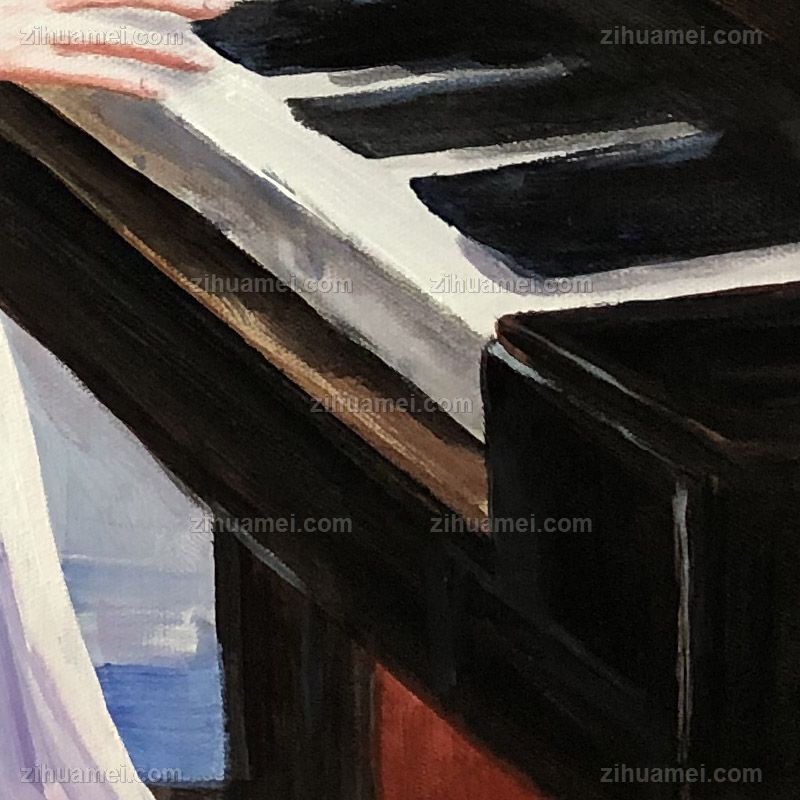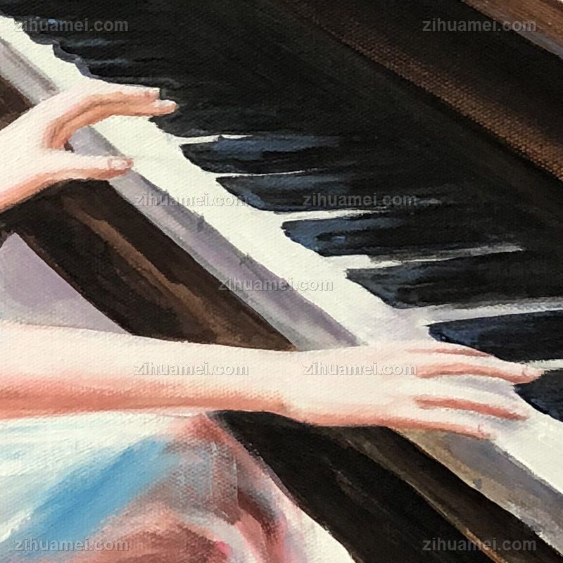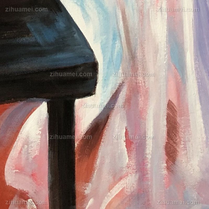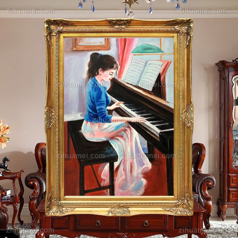 • 纯手绘人物油画弹钢琴的女孩写意人物油画客厅卧室油画