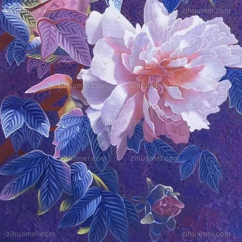 • 纯手绘油画工笔画新中式花鸟油画适合玄关的牡丹油画花开富贵
