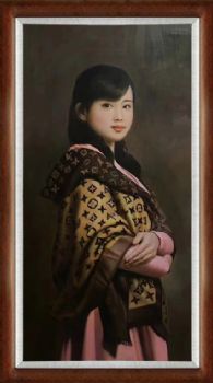 中式美女人物肖像图纯手绘人物油画写实美女图 手绘
