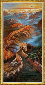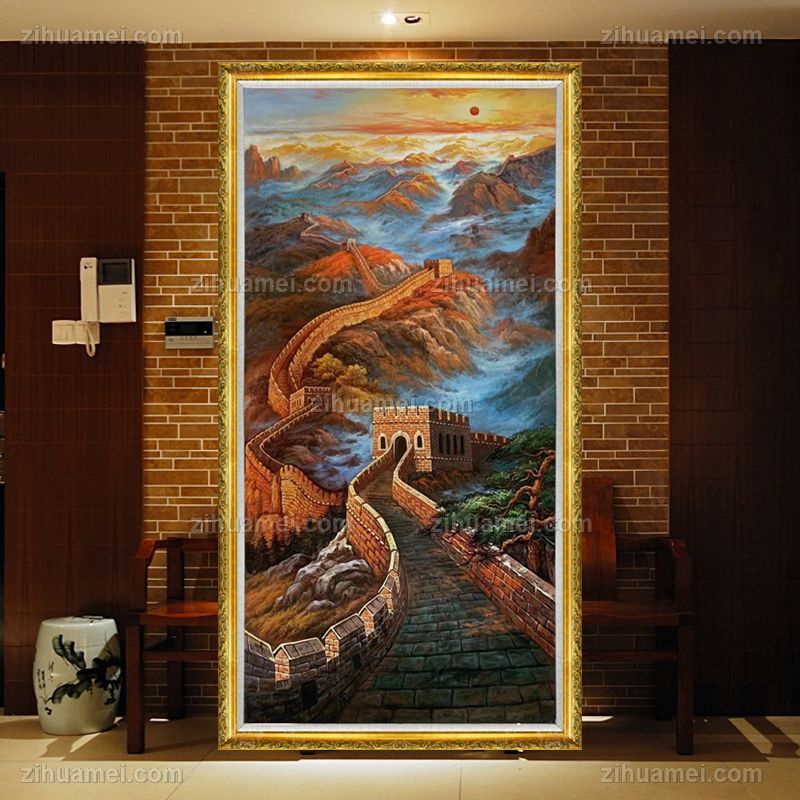 基业长青新中式手绘长城风景油画实木画框 手绘
