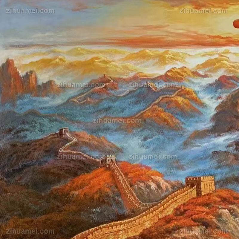 江山一条龙长鸿风景油画纯手绘长城风景油画 手绘