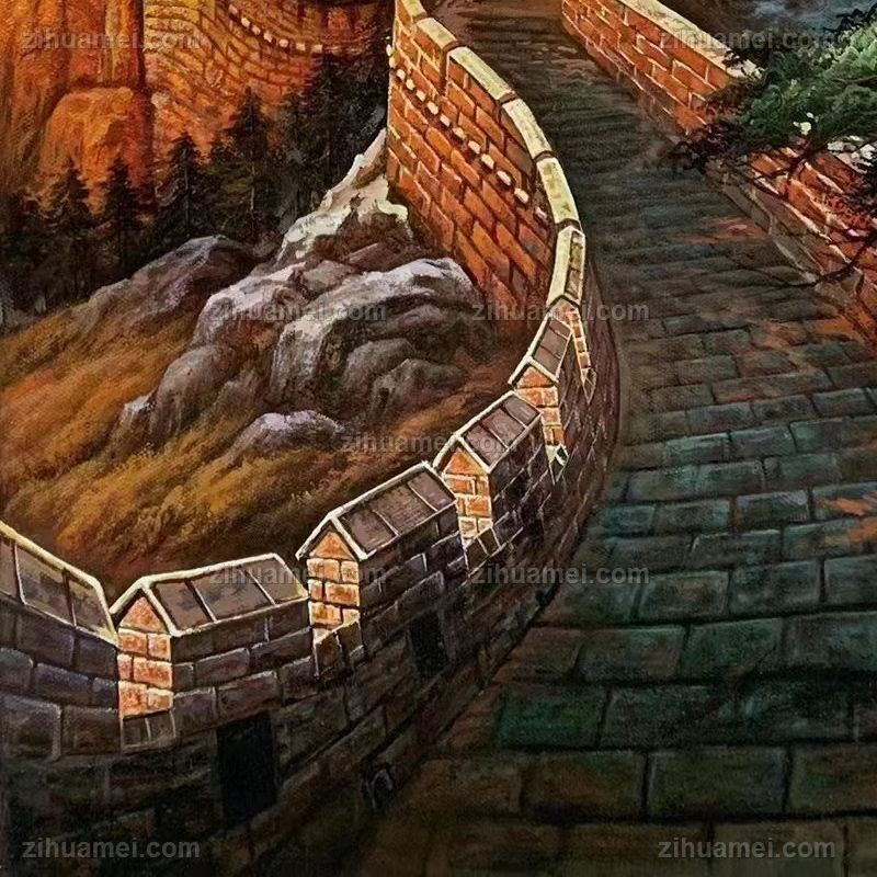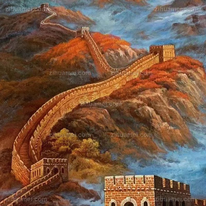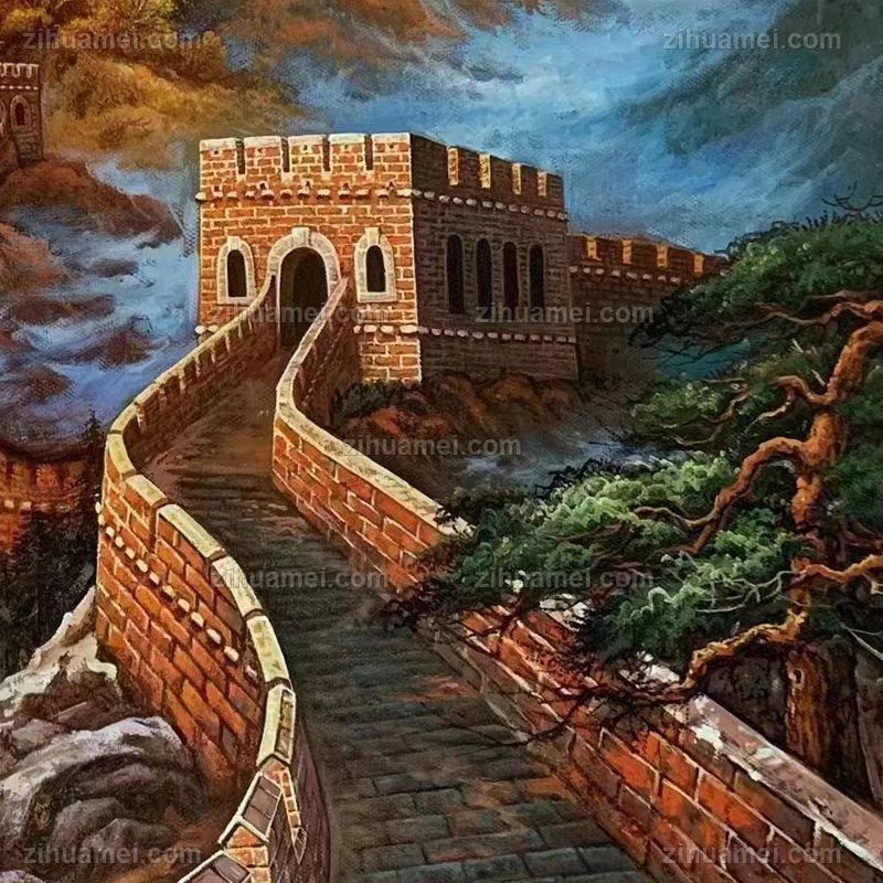 • 新中式风景油画万里长城纯手绘写实油画实力画家作品