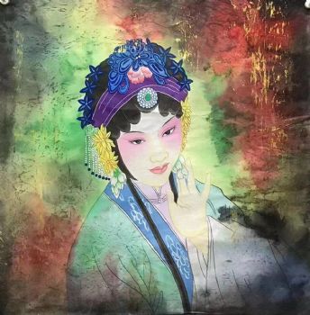 • 手绘彩墨水彩国画人物画