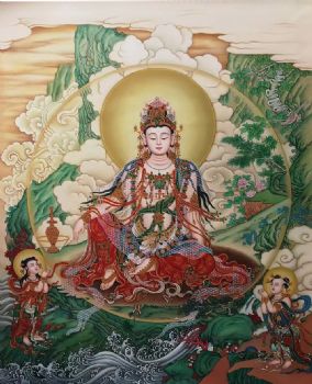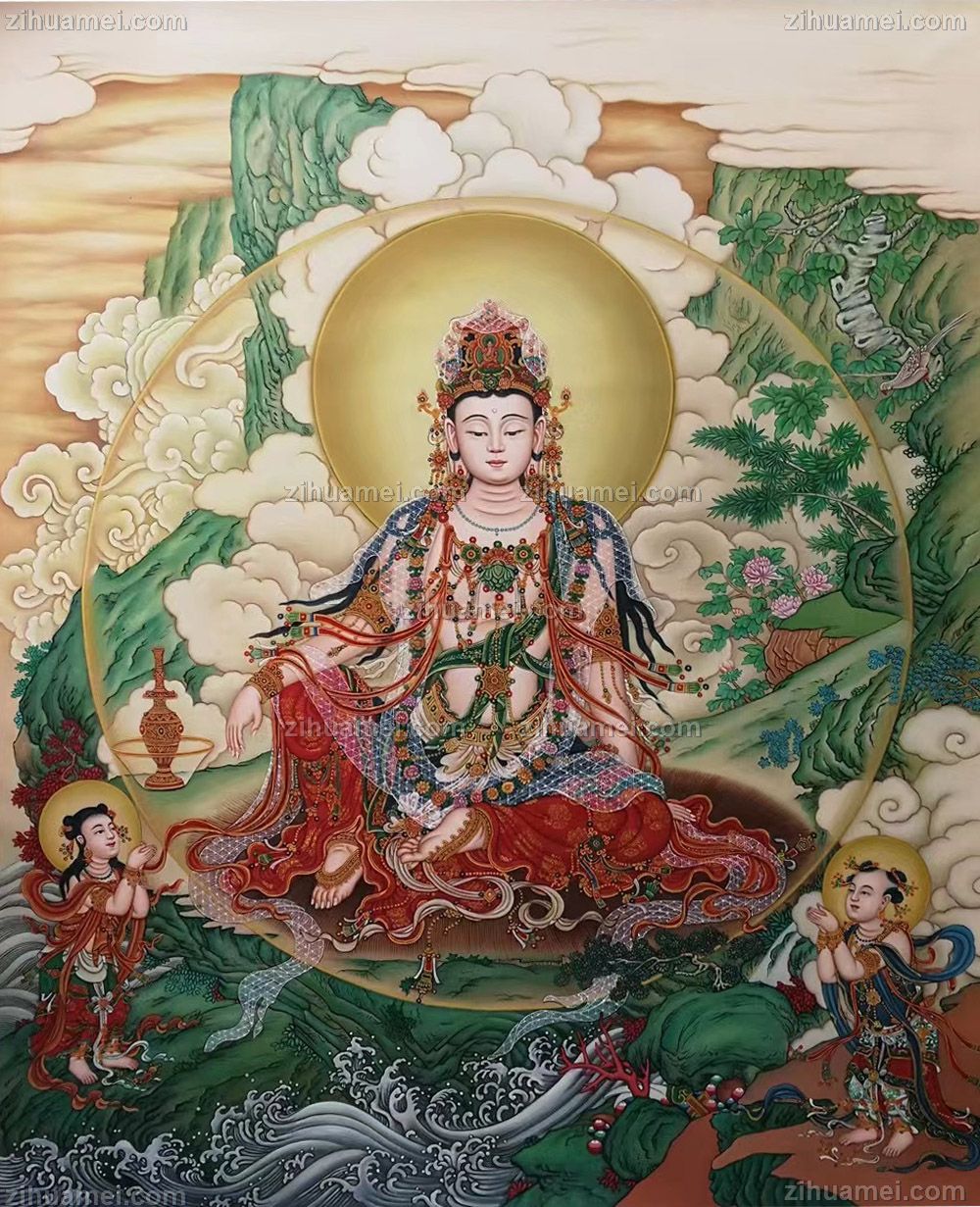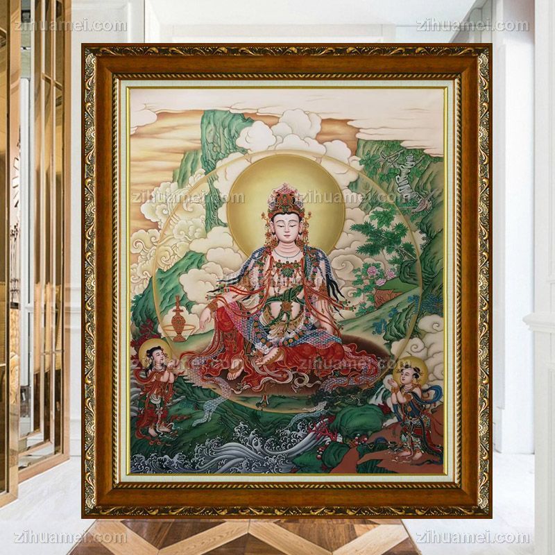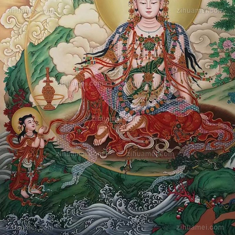 • 纯手绘人物油画神佛工笔写实油画适合大厅中堂实木外框