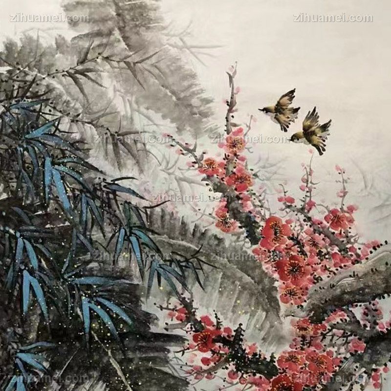 • 纯手绘水墨花鸟画