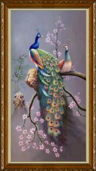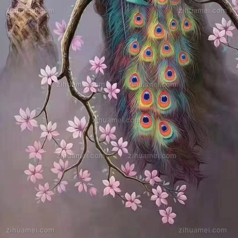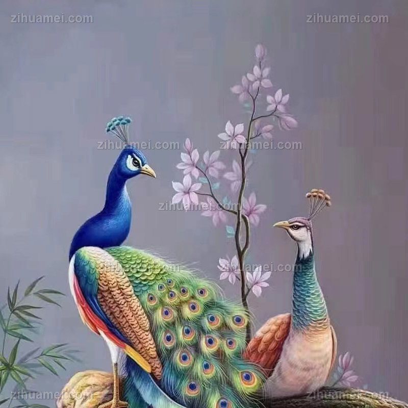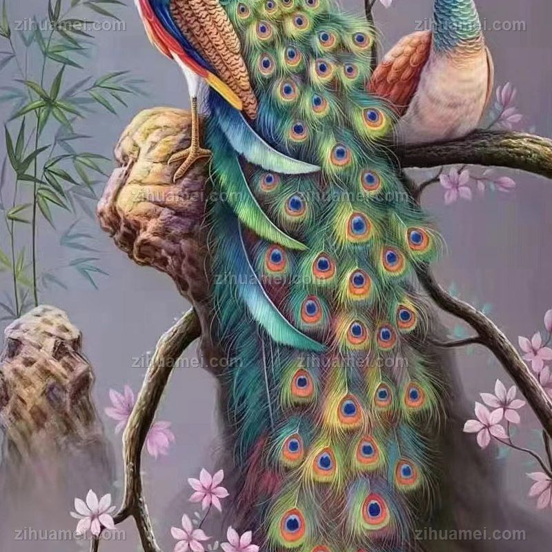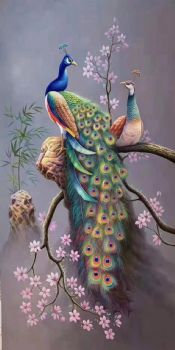 • 孔雀不落无宝之地纯手绘动物油画高品质玄关油画实木画框