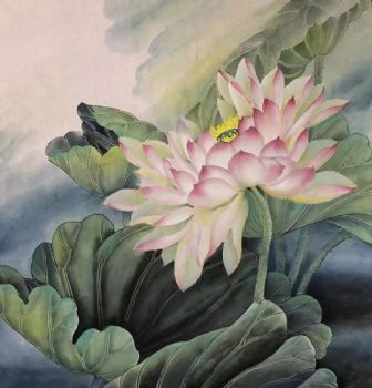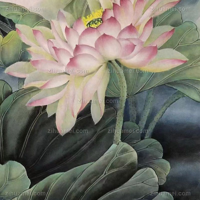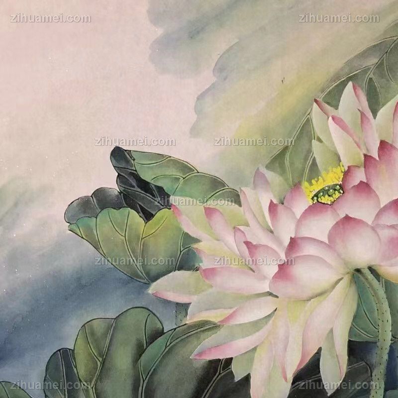 • 工笔花鸟国画纯手绘水墨国画荷花与荷叶寓意和和美美家大业大