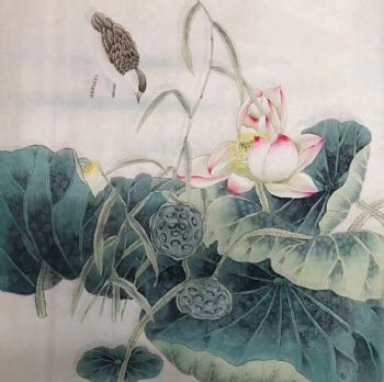• 安居乐业工笔花鸟国画纯手绘水墨国画荷花与鹌鹑寓意和和美美家大业大