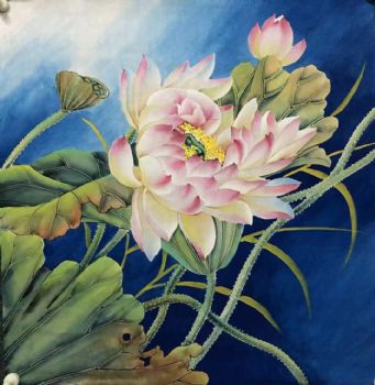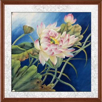 • 新中式工笔花鸟国画纯手绘水墨国画荷花与荷叶寓意家大业大实木画框