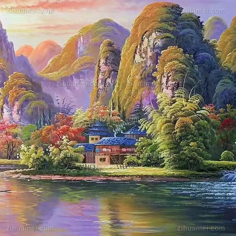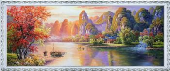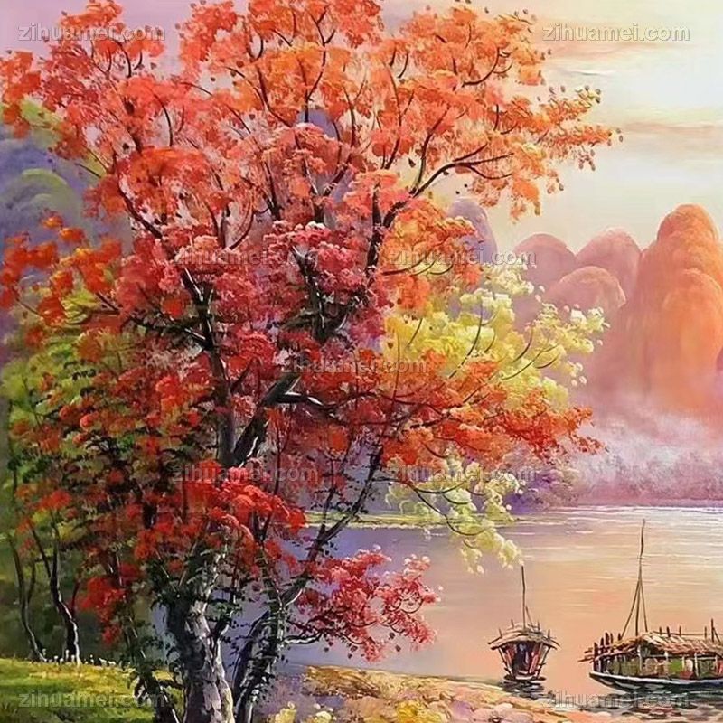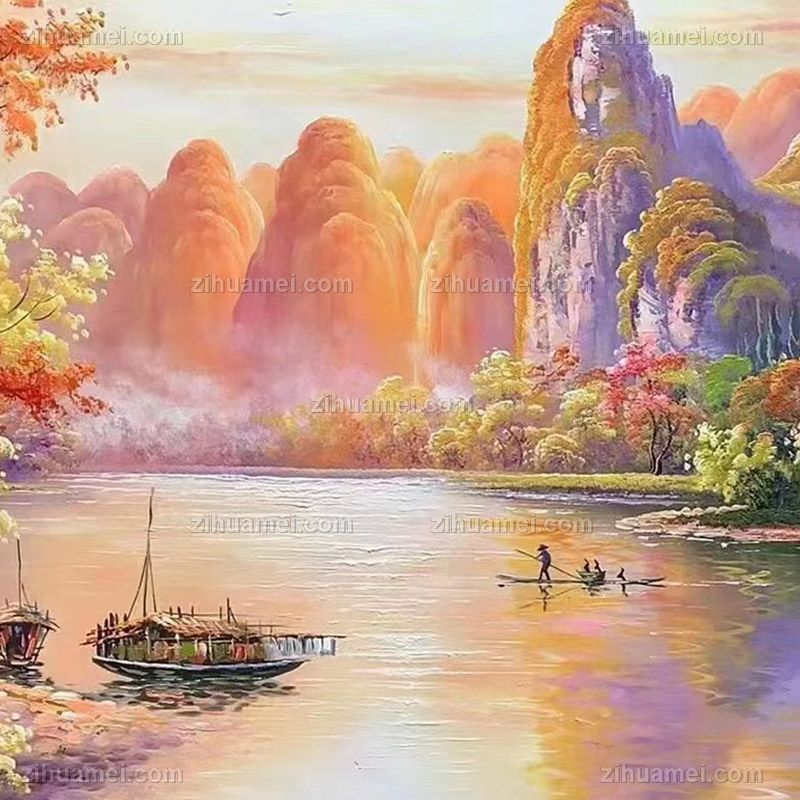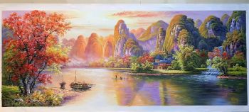 • 鸿运当头一片红色纯手绘优美山水风景油画桂林山水甲天下新中式风水油画