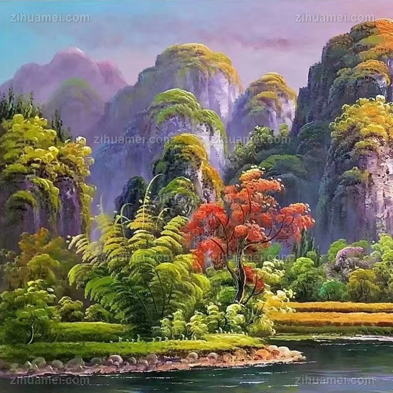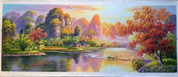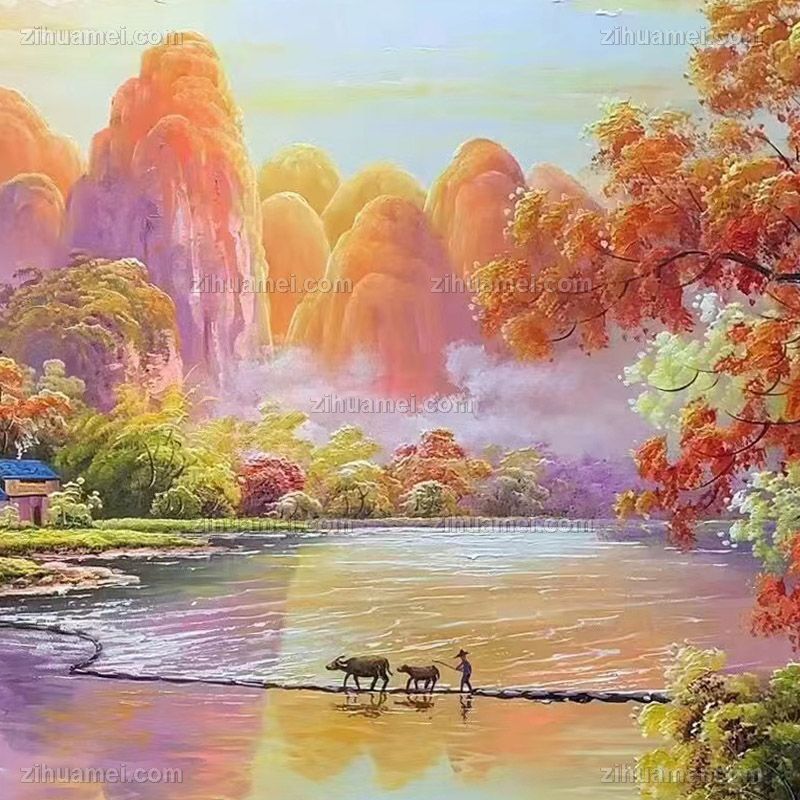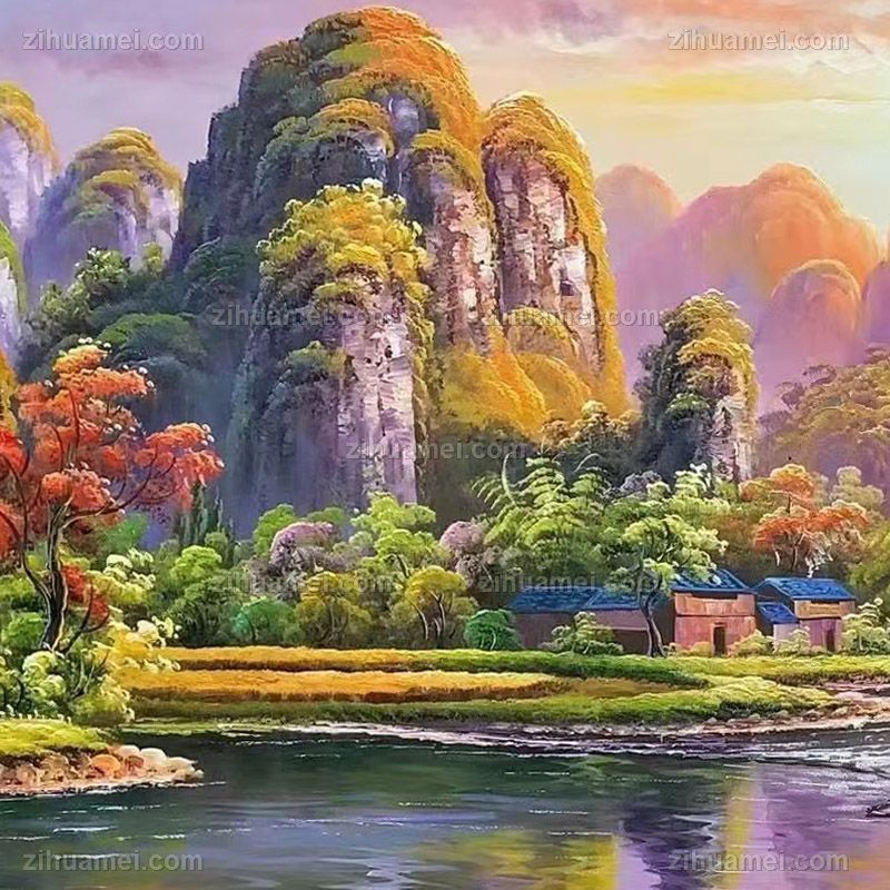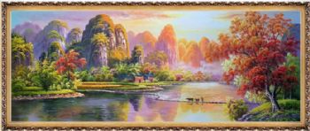 • 新中式鸿运当头纯手绘优美山水风景油画桂林山水甲天下农耕油画