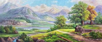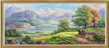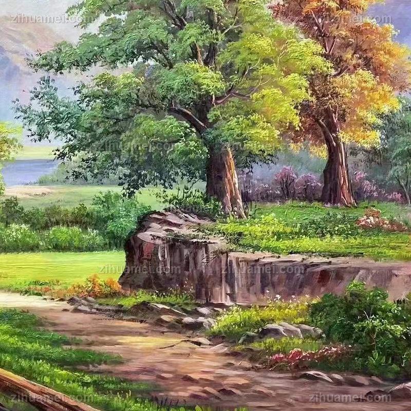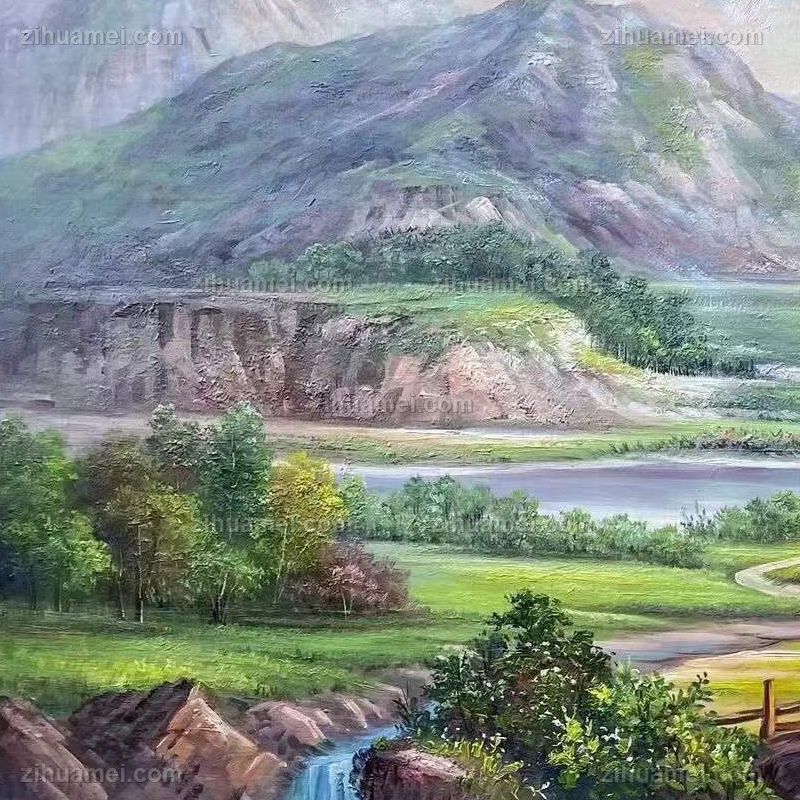 • 青山绿水春意盎然山水风景油画纯手绘油画实木画框