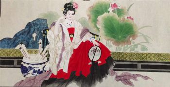• 手绘人物国画四尺工笔人物美女图仕女图古代人物国画