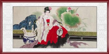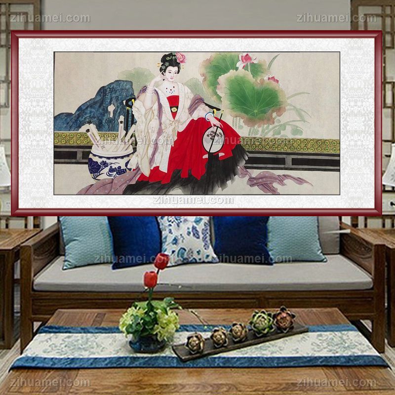 精品中式人物国画美女仕女图小四尺实木画框 手绘
