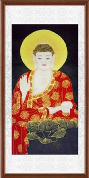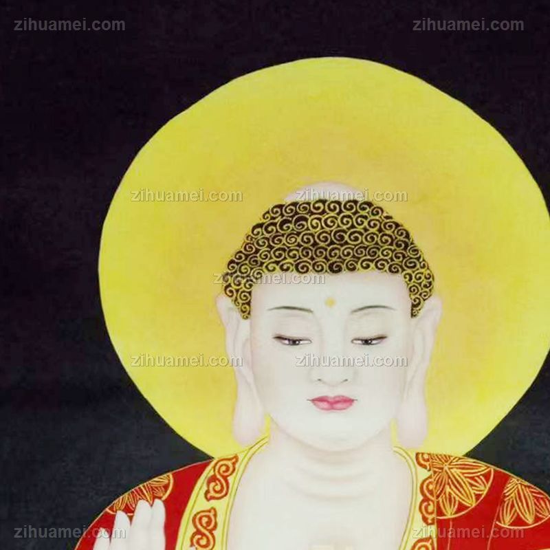 • 纯手绘工笔国画大雄宝殿如来佛人物国画适合中堂的水墨画