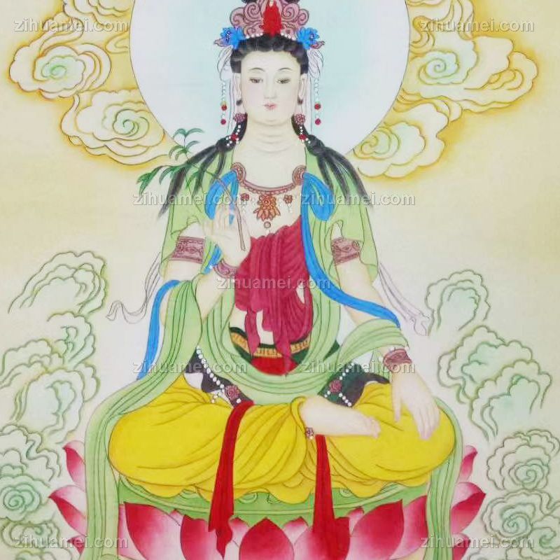 • 观音菩萨纯手绘工笔国画神佛人物国画适合中堂的水墨画