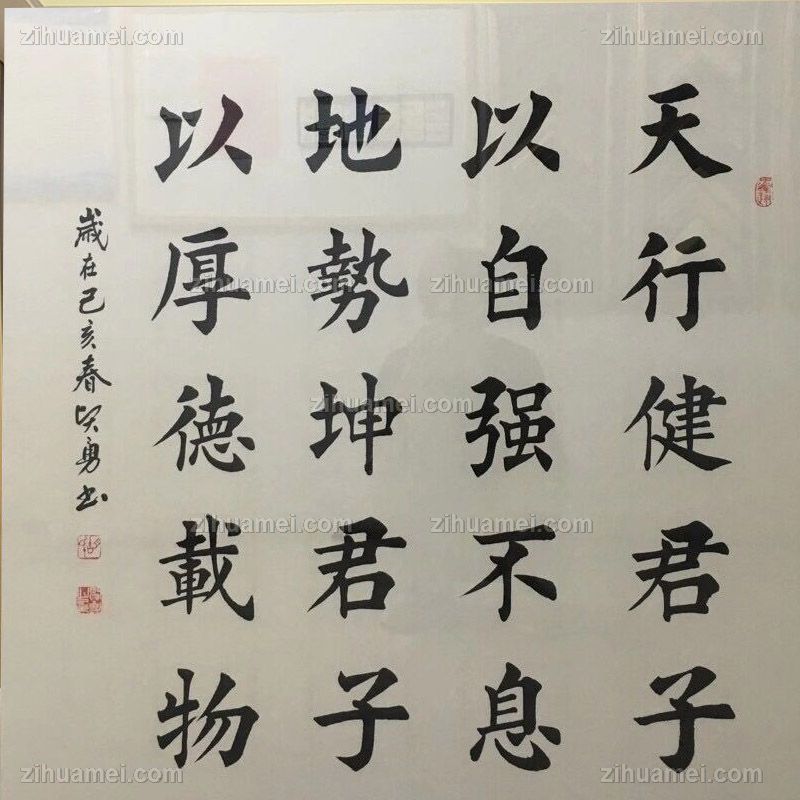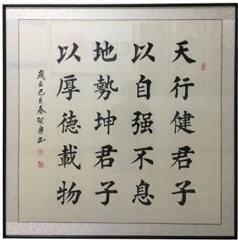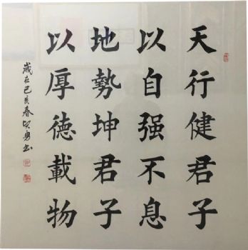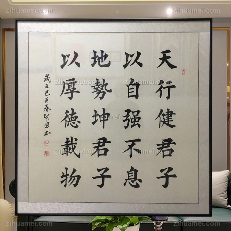 • 天行健 君子以自强不息,地势坤 君子以厚德载物 中国书画家协会会员 胡贤勇作品 铝合金外框