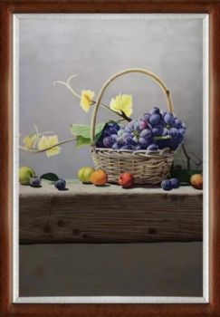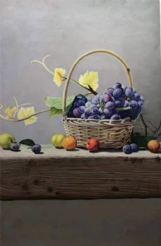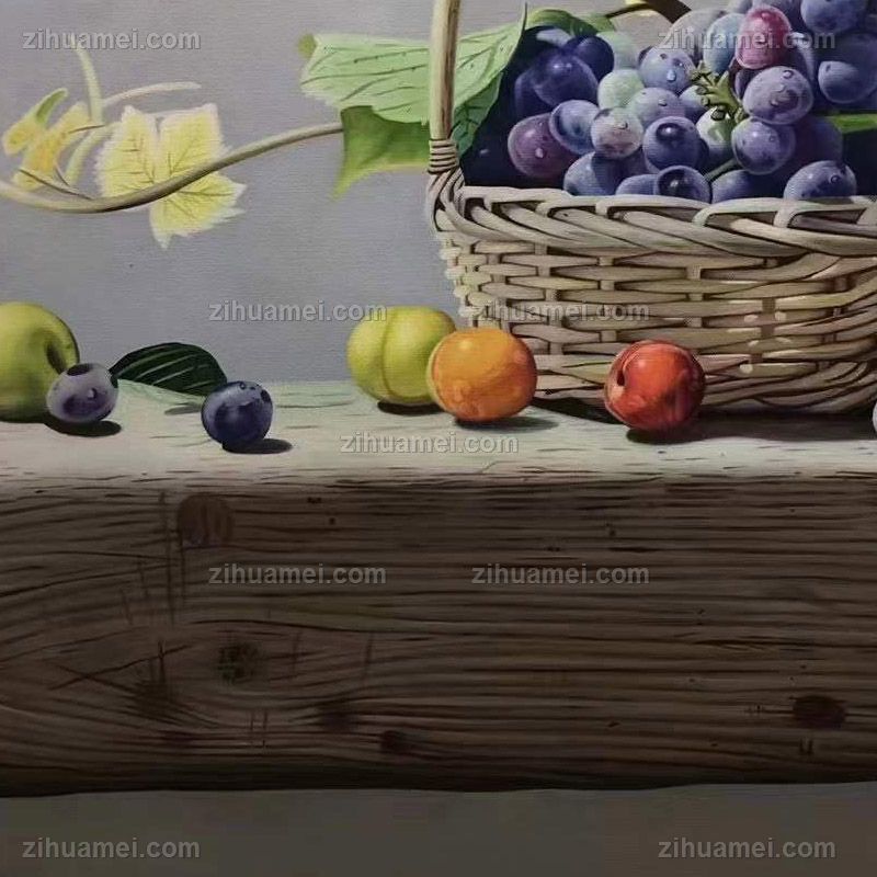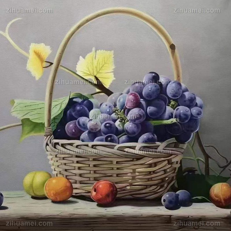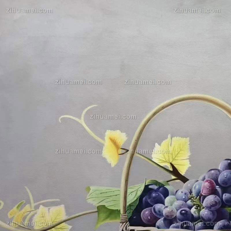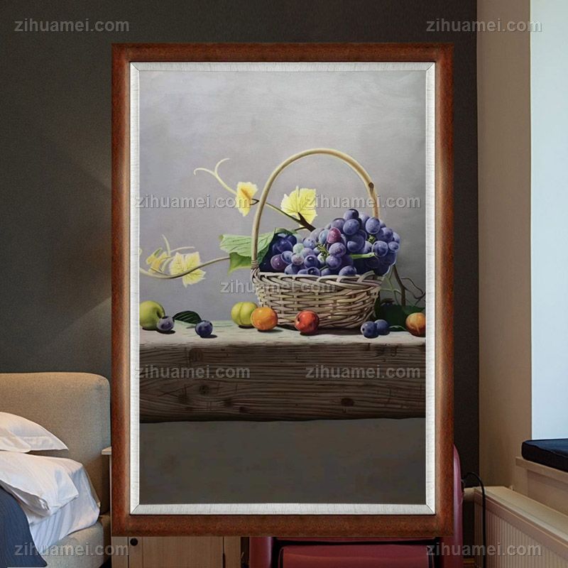 • 纯手绘超写实油画静物水果油画实木画框多子多福葡萄画