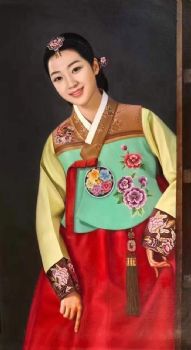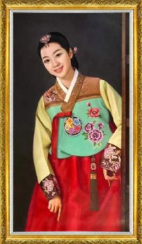 纯手绘朝鲜人物油画精品收藏油画美女图 手绘