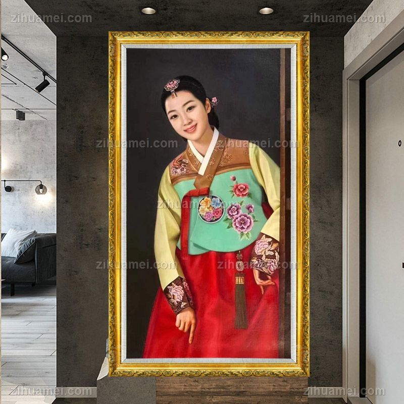 朝鲜精品人物写实油画纯手绘人物油画美女图 手绘