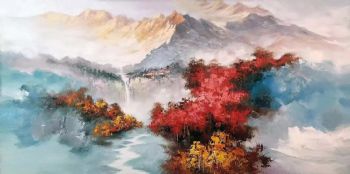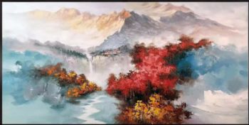 • 当代艺术纯手绘油画风景山水画大写意风景油画适合酒店大厅客厅装饰油画