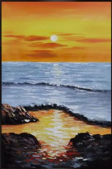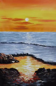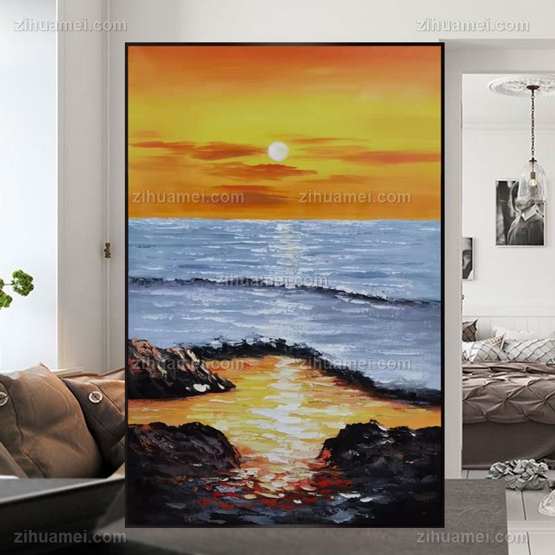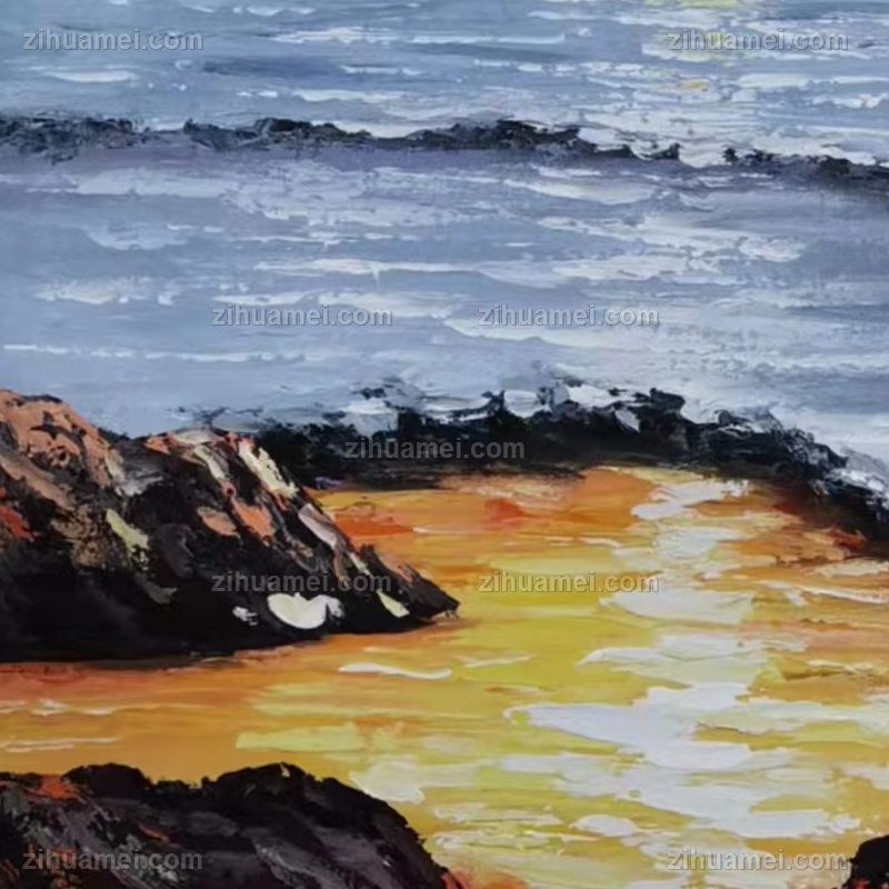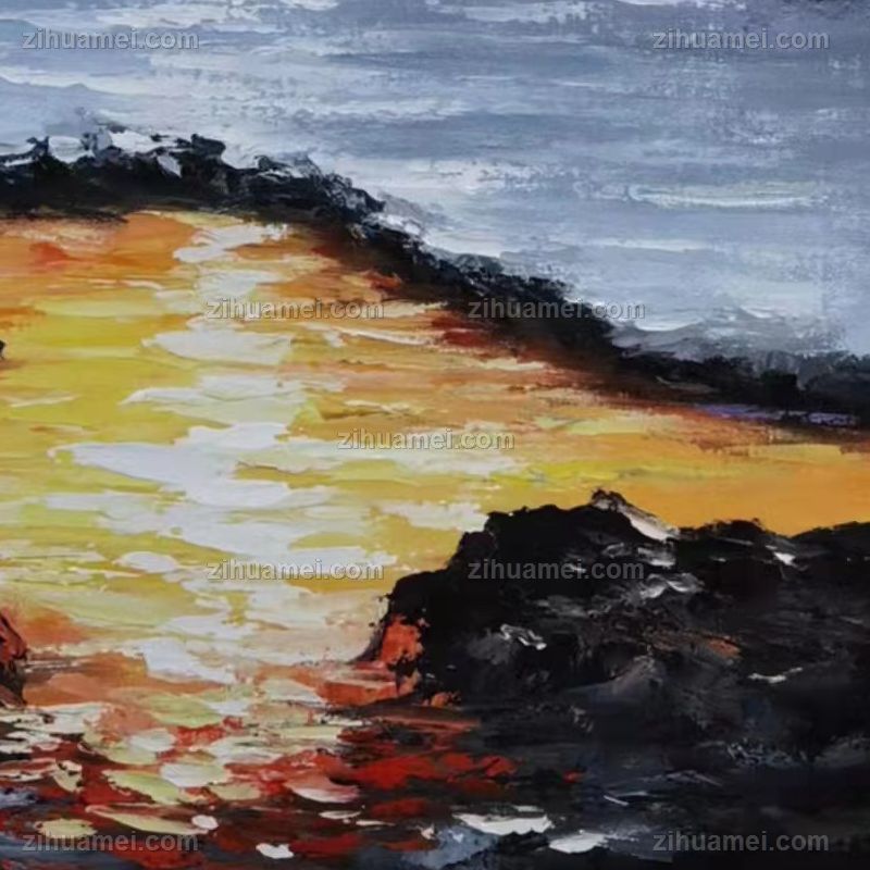 • 纯手绘油画丰富厚肌理海边的霞光现代艺术风景山水画大写意风景油画