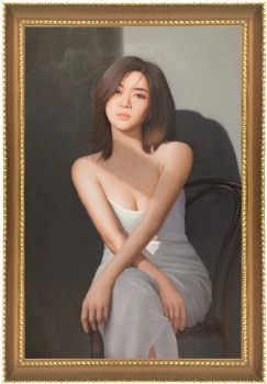 纯手绘人物油画美女图肖像油画金色实木画框 手绘