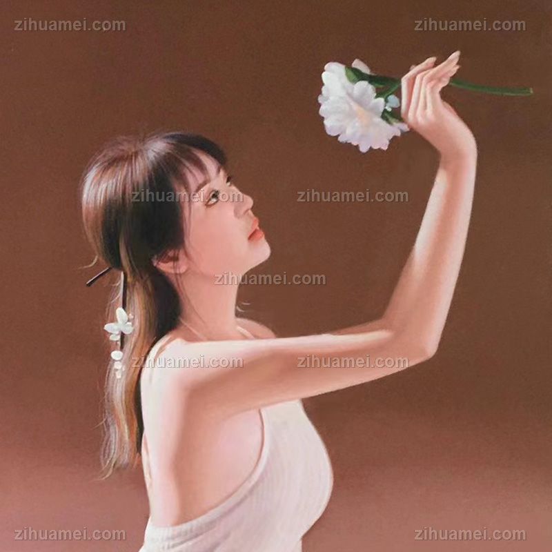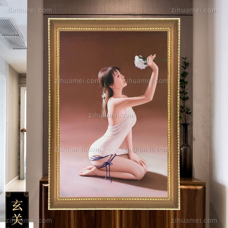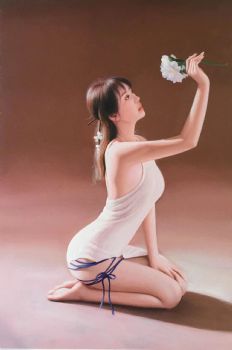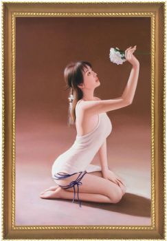 • 手持花朵舞蹈少女纯手绘人物写实油画美女油画人体肖像油画