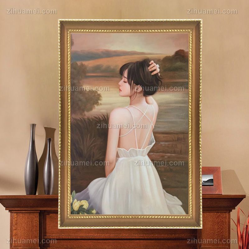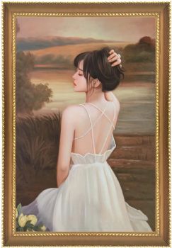 纯手绘人物油画美女图肖像油画金色实木画框 手绘