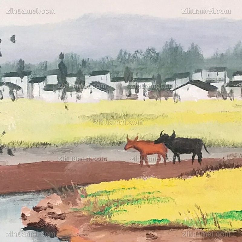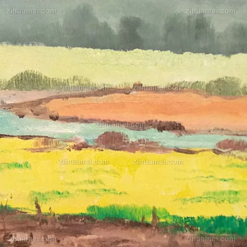 • 春耕的景象抽象写意纯手绘油画春天里的油菜花风景油画现代艺术画